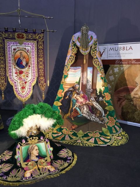 Lorca participa por primera vez en esta feria con una importante muestra de bordados del Paso Blanco y con un audiovisual en el que se pueden apreciar tanto las peculiaridades de nuestros desfiles bíblico-pasionales como el video de la candidatura del arte del bordado lorquino a Patrimonio Inmaterial de la Humanidad por la UNESCO.