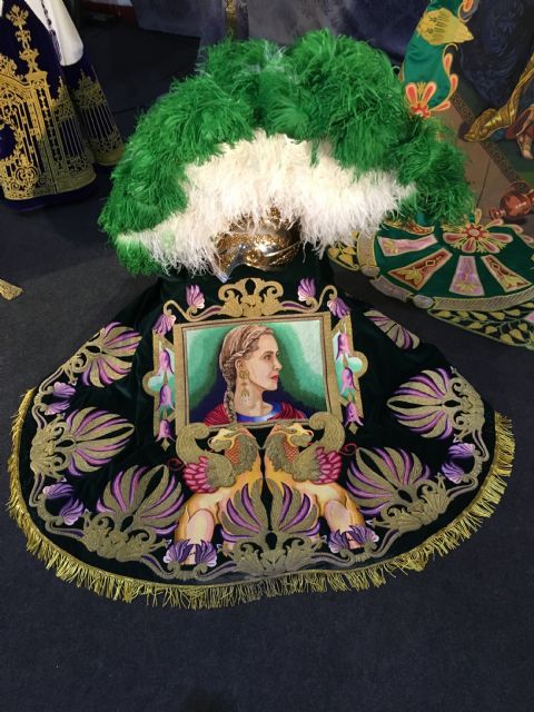 Los bordados que se pueden ver durante este fin de semana en Granada son el manto de la reina Ester; el manto de Memucán, perteneciente a la caballería “El festín de Asuero”; y el manto del capitán de la banda romana, en el que aparece la diosa Euterpe; el Estandarte del Rosario y uno de sus nazarenos; y el banderín de la Agrupación Musical Virgen de la Amargura.