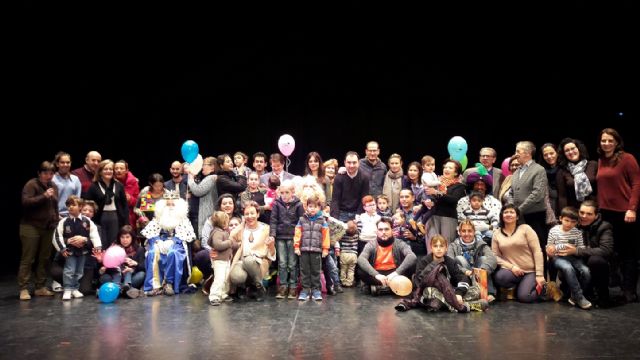 El Alcalde de Lorca, Francisco Jódar, junto a la Concejal de Política Social del Ayuntamiento de Lorca, Fátima Mínguez, han acompañado esta mañana a Sus Majestades Los Reyes Magos de Oriente en la entrega de regalos a los niños que son usuarios del Centro Municipal de Atención Temprana, un acto que ha tenido como escenario el Teatro Guerra.