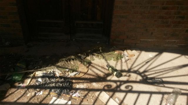 La edil socialista denuncia los destrozos y pintadas en la mayoría de los elementos ornamentales y de mobiliario urbano, así como la acumulación de excrementos de animales y basura en las jardineras, en los rellanos vallados de los soportales anexos a la Plaza, y en las escaleras que dan acceso al sótano de las instalaciones del histórico Centro Comarcal de Salud.