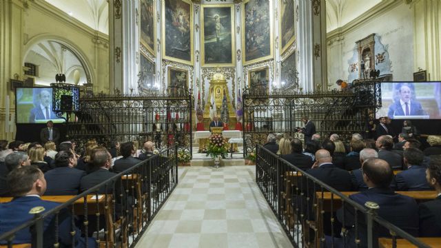 "Pero Lorca también es recogimiento", dijo, en alusión al Sábado de Pasión, donde desde San Patricio sale el Paso Negro en una procesión "con tanta solemnidad como encanto" que "nos acelera el corazón al contemplar a la Virgen de la Soledad a hombros de los profesionales de la justicia".