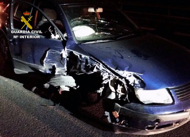 Inmediatamente se estableció el dispositivo oportuno para hacer frente a esta situación irregular movilizándose dos patrullas de motoristas de la Agrupación de Tráfico, que lograron interceptar al vehículo en la autovía A-7, en las proximidades del túnel de Lorca después de haberse incorporado a la calzada en sentido contrario al establecido, recorrer unos 500 metros de forma irregular y ocasionar un accidente de circulación al colisionar con un taxi en el que resultó herida de consideración la pasajera de este último vehículo.