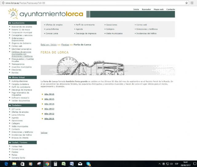 La concejal socialista María Antonia García Jiménez ha mostrado su "incredulidad" al comprobar que aún hoy sigue sin haber ninguna referencia en la web municipal a la Feria y Fiestas de Lorca 2017.