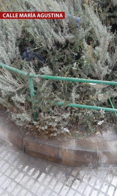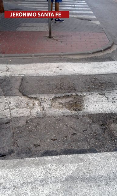 Gloria Martín, que recorrió la zona acompañada de vecinos de este barrio, detectó otros importantes problemas como aceras levantadas, socavones en el asfalto y zonas ajardinadas sucias y en estado de desidia en las calles Jerónimo Santa Fe, María Agustina, Ortiz de la Jara o Presbítero Gálvez Borgoñez. En esta última vía, las marcas viales, incluidas las de aparcamientos para personas con movilidad reducida, son prácticamente invisibles.