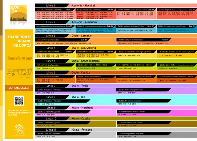 Pelegrín ha indicado que "desde mañana también estarán disponibles las 11 líneas, 8 de ellas nuevas y 3 ya existentes. Con la creación de estas nuevas 8 líneas se amplía la cobertura del transporte urbano colectivo de viajeros de Lorca, permitiendo con ello que un mayor volumen de ciudadanos tenga acceso al mismo y se mejore la comunicación entre el núcleo urbano de la ciudad y algunas pedanías".