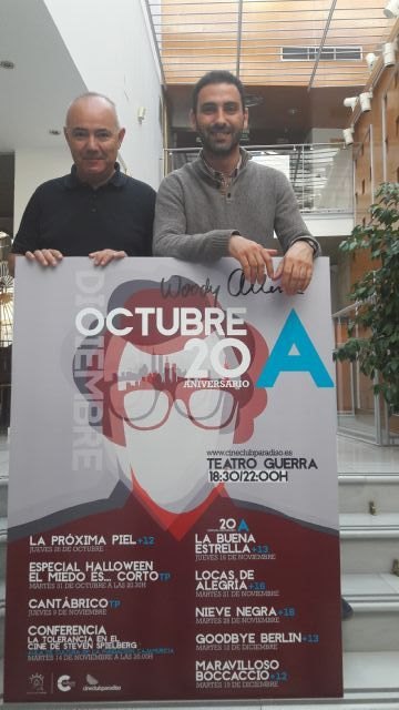 El Concejal de Cultura del Ayuntamiento de Lorca, Agustín Llamas, junto al Director del Cineclub Paraíso, Jesús Martínez, ha presentado esta mañana la programación de otoño, de octubre a diciembre, que pone en marcha de nuevo este colectivo lorquino y que este año más que nunca se trata de una agenda cinematográfica muy especial y cuidada, ya que Cineclub Paradiso cumple en noviembre su 20 aniversario.