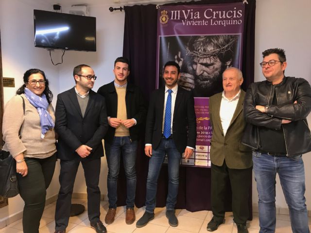 El Concejal de Cultura del Ayuntamiento de Lorca, Agustín Llamas, y el presidente del Paso Morado, Fulgencio Martínez, han presentado esta mañana el III Via Crucis Viviente que organiza la Cofradía del Santísimo Cristo del Perdón, Paso Morado, con la colaboración del Ayuntamiento de Lorca y que se celebrará el Lunes Santo, día 26 de marzo, a partir de las 20:30 horas desde San Francisco.