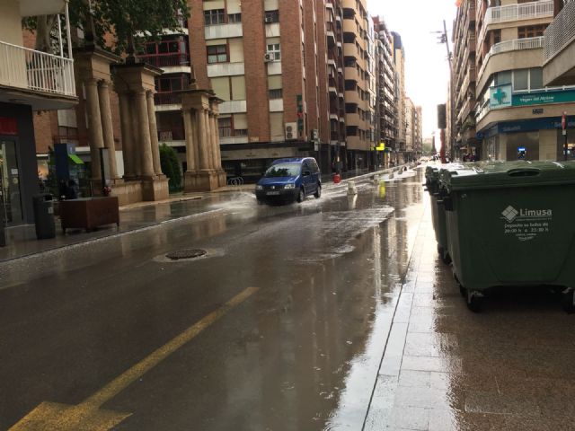 Apenas 10 minutos de lluvias intensas han provocado la anegación de calles como la Travesía Ramon y Cajal, paralela a la Avenida y cuya remodelación también iba incluida en el proyecto de Juan Carlos I.