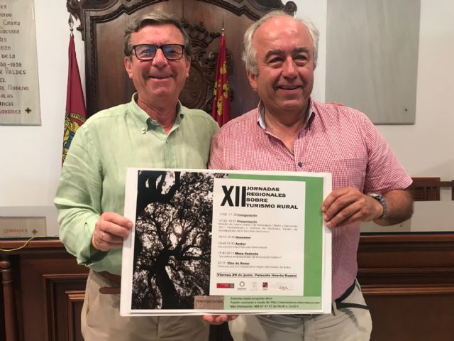 El Concejal de Turismo del Ayuntamiento de Lorca, Francisco Montiel, junto a Francisco Carreño, Director del Observatorio de Desarrollo Rural y Local de la Universidad de Murcia, han presentado las XII Jornadas Regionales sobre Turismo Rural que se celebrarán en nuestro municipio protagonizadas por el eje central "Innovación y buenas prácticas de turismo rural". Se desarrollará en una única sesión el viernes 29 de junio en el Palacio del Huerto Ruano, teniendo los asistentes y ponentes la oportunidad de participar por la mañana en una visita guiada al casco histórico de Lorca que incluirá la visita a la exColegiata de San Patricio.