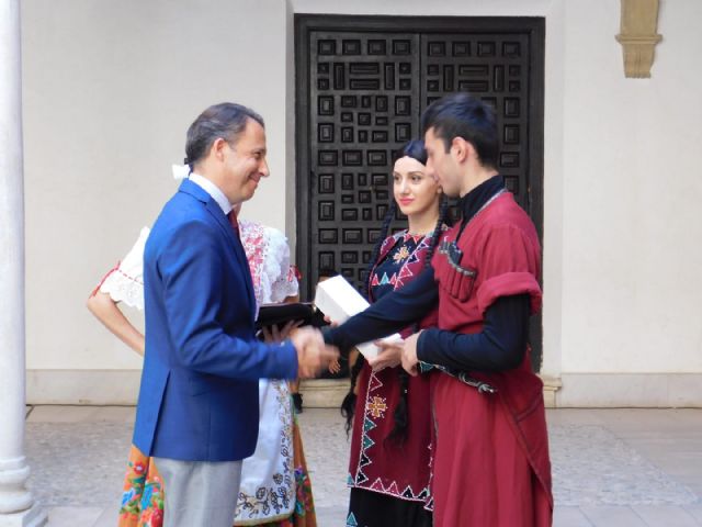 El Alcalde de Lorca, Fulgencio Gil, ha recibido esta mañana en el Palacio de Guevara a los grupos participantes en el XXIX Festival Internacional de Folclore "Virgen de las Huertas", que como viene siendo habitual se celebra en nuestra ciudad con motivo de las fiestas en honor a la Virgen de las Huertas, Patrona de Lorca.