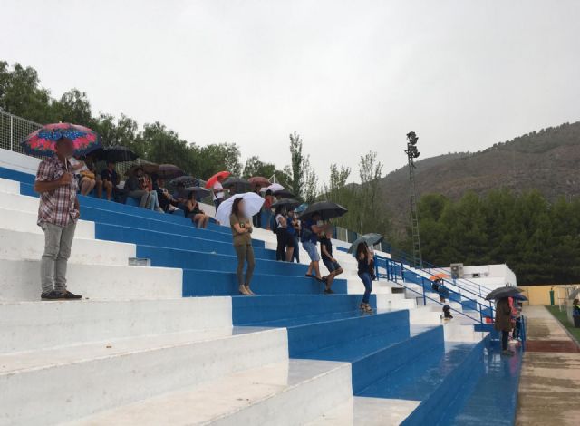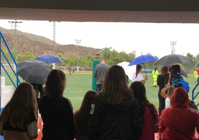 La falta de estas cubiertas volvió a ocasionar que durante la segunda parte del partido de la segunda división del fútbol femenino, y que enfrentaba al Lorca Féminas contra el Elche, los espectadores tuvieran que aguantar a la intemperie, al amparo únicamente de sus propios paraguas o chubasqueros, o a buscar refugio en la entrada a los vestuarios.