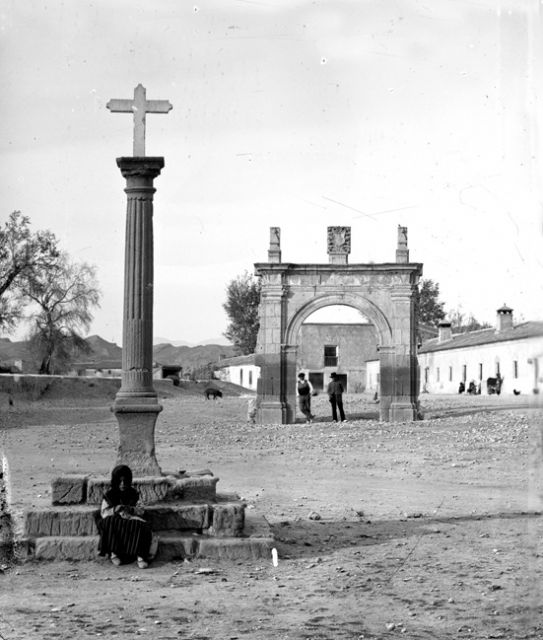 Cabe destacar que se trata de una cruz exenta pometeada que descansa sobre un capitel toscano, con un fuste de columna acanalado en los dos tercios superiores, basa, pedestal de éntasis inverso y gradas formadas por tres escalones. La misma fue levantada en 1714 para sacralizar el atrio del Convento de la Virgen de las Huertas debido a la Feria que allí se estuvo realizando hasta mediados del siglo XIX, que por el mal estado de las instalaciones, se trasladó a la ciudad. Esta cruz venía a delimitar el atrio, y señalaba que era un espacio sagrado que no debía ocuparse con los puestos de los feriantes.