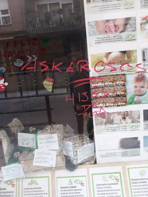 La sede de VOX en Lorca, recientemente inaugurada, ha sido ataca con pintadas como símbolos nazis e insultos. Se trata del segundo ataque que recibe el partido en Lorca en menos de un mes, ya que hace apenas dos semanas dos afiliados del partido fueron agredidos mientras trabajaban en arreglar la sede, que precisamente hoy ha vuelto a ser atacada y ensuciada