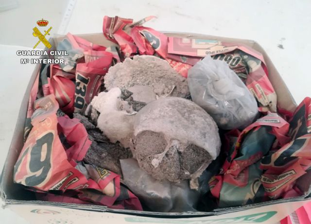 La investigación se inició el pasado mes de junio, cuando agentes especializados en Patrimonio Histórico de la Benemérita localizaron, en una nave industrial del término municipal de Lorca, miles de piezas arqueológicas cerámicas, metálicas y óseas en su mayor parte fragmentadas, todo lo cual fue puesto en conocimiento de los organismos competentes de la Comunidad Autónoma en materia cultural.