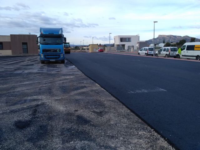El Edil de Fomento ha indicado que este proyecto también ha contemplado la pavimentación de la explanada resultante a base de mezcla bituminosa en caliente (asfalto), con un espesor de 4 cm, previo riego de imprimación sobre el terreno. La pavimentación se ha extendido a lo largo de 30 metros lineales de calle pertenecientes a la urbanización que todavía se encontraban en tierras, además, de llevar a término múltiples reparaciones puntuales de pavimento en otras zonas, algunas de las cuales aún se están desarrollando.