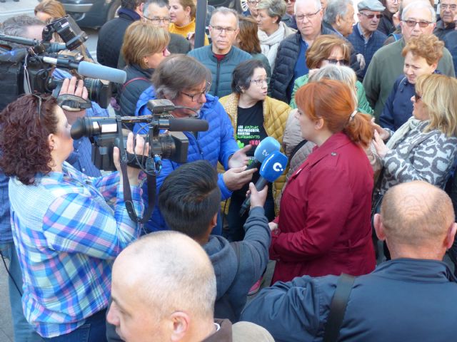 Más de medio centenar de afectados se han reunido esta mañana a modo de protesta en la puerta del Huerto Ruano donde el Gobierno regional ha celebrado un consejo extraordinario. "Todo lo que estamos consiguiendo es gracias a la presión ciudadana, a vecinos que se han unido para hacer frente a esta situación terriblemente injusta", dijo Martín. Los afectados volverán a hacer acopio de paciencia y buena voluntad y esperarán a ver lo que sucede el día 11. Si la CARM sigue "sin dar su brazo a torcer" y pretende hacerles pagar por un procedimiento administrativo que ha sido "caótico y extemporáneo", han decidido volver a encerrarse en el Ayuntamiento esa misma tarde, advirtió Martín.