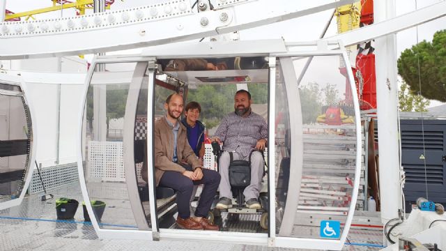 Además, junto al presidente de la Asociación de Feriantes de Lorca, Rafael González, los concejales y el representante de ASDIFILOR han visitado la noria panorámica con acceso a personas en sillas de ruedas y cuyo dueño ha anunciado el disfrute de todas estas personas será gratuito.