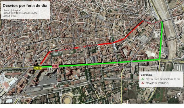 Por otro lado, con motivo de la Feria y Fiestas de Lorca 2019 y debido al corte al tráfico de vehículos de la calle Lope Gisbert desde mañana, sábado 21 y hasta el próximo domingo, 29 de septiembre, entre las 13 y las 21 horas, las líneas de autobuses L1 (hospital), Línea 5 (Castillo) y Línea 8 (Río) serán desviadas, además se suprimirán las paradas de Sto. Domingo, Correos, Plaza Colón, estableciéndose como alternativas las del I.E.S. Ramón Arcas, Las Columnas y Plaza Óvalo.