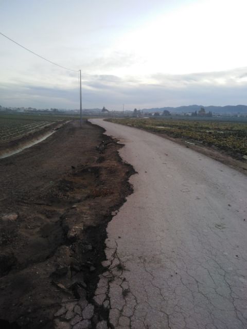 El portavoz de IU-Verdes en el Ayuntamiento de Lorca, Pedro Sosa, ha denunciado esta mañana el estado "vergonzoso" del camino de La Parada, en la pedanía de Campillo, afectado por la DANA del pasado mes de septiembre y que sigue sin repararse.