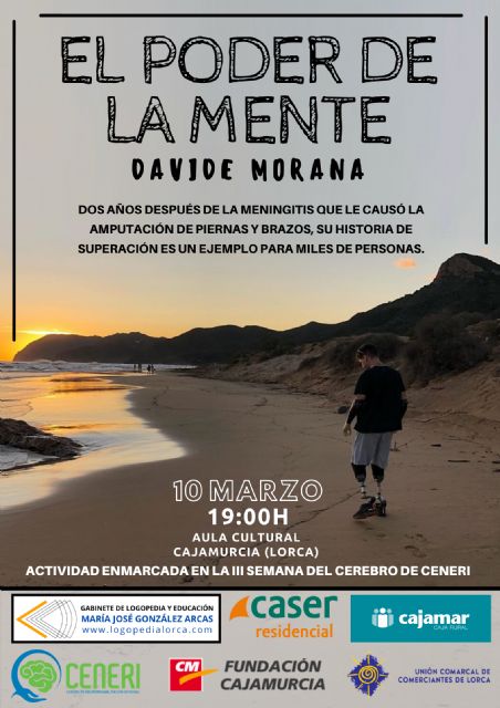 El martes 10 se desarrollará una charla motivacional a cargo de Davide Morana, joven que a sus 24 años sufrió una meningitis que desembocó en la amputación de sus extremidades. Con el título “El poder de la Mente”, esta actividad comenzará a las 19:00 en el Centro Cultural de Cajamurcia.