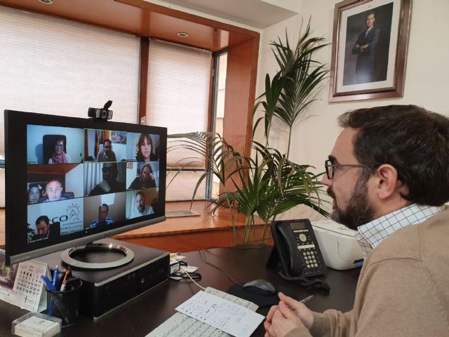 El alcalde de Lorca, Diego José Mateos, mantiene una reunión por videoconferencia con los portavoces de todos los grupos municipales para acordar la celebración de un Pleno Extraordinario en el que se consensuen medidas económicas y sociales que reduzcan el efecto de la crisis sanitaria.