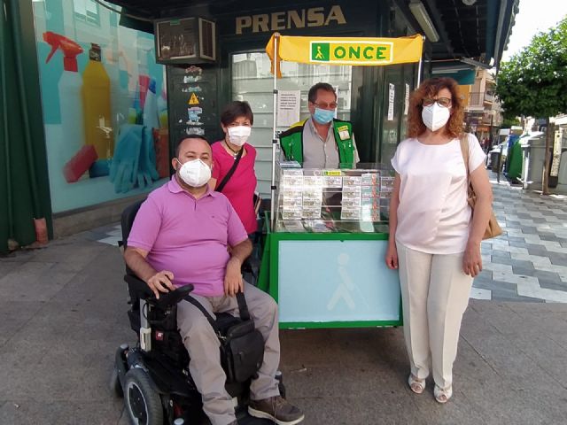 La concejala de Servicios Sociales del Ayuntamiento de Lorca, María Dolores Chumillas, ha anunciado esta mañana, junto al presidente de la Asociación de Discapacitados Físicos de Lorca y Comarca del Guadalentín (Asdifilor), José Luis LLamas y a la directora de la ONCE en Lorca, Ana García Oltra, la vuelta a su actividad de los vendedores y vendedoras de esta organización, tras tres meses de confinamiento.
