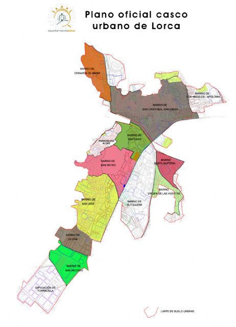 El edil ha concretado que "la delimitación del perímetro del casco urbano de Lorca es: por la parte norte la carretera de Caravaca RM-11 en su intersección con la Autovía A-7, barrio Corazón de María; por el noroeste el cruce de la antigua Carretera Nacional N-340 en su intersección con el tramo I de la Ronda Central en el barrio de Apolonia; por el Este el Canal de Tiata y Carretera D-7 en diputación de la Pulgara. Por el oeste la delimitación es la Autovía A-7 y el Castillo; por el sur la Carretera RM-11 hacia Águilas en su intersección con la línea del Ferrocarril en el barrio de San Antonio, diputación de Tiata y Campillo".