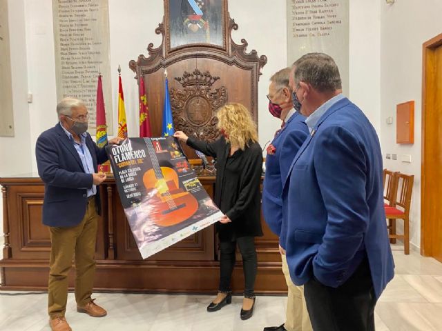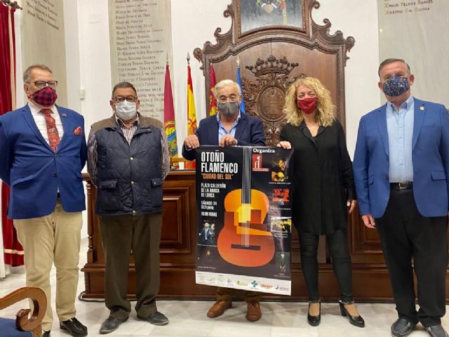 27 de octubre de 2020. La concejala de Cultura del Ayuntamiento de Lorca, María Ángeles Mazuecos, ha presentado, esta mañana, junto al presidente de la Peña Cultural Flamenca 'Ciudad del Sol', Cayetano Padilla y Luis Terry, Coordinador del Festival Ciudad del Sol, la actuación de cante y baile flamenco prevista para este próximo sábado, 31 de octubre, bajo el título 'Otoño Flamenco Ciudad del Sol', así como su cartel anunciador.
