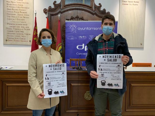 La concejala de Deportes, Irene Jódar, y el técnico deportivo, Daniel Navarro, han presentado, esta mañana, el programa elaborado por la Concejalía de Deportes del Ayuntamiento de Lorca "+MOVIMIENTO +SALUD", cuyo objetivo es la promoción de la práctica de actividad física por parte de la población del municipio de Lorca ofreciendo diferentes alternativas para practicar y ganar premios.