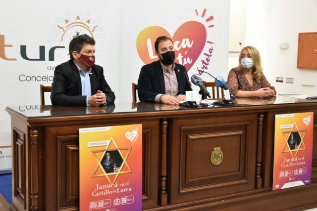El edil de Turismo ha indicado que la Janucá será el sábado 12 de diciembre a las 18:00 horas en la Sinagoga del Castillo de Lorca y se ha adaptado a las restricciones sanitarias con un aforo muy limitado. Morales ha señalado que este año, para celebrarla, con motivo del aniversario, la Federación San Clemente junto a la concejalía de Turismo hemos organizado un recital de poesía sefardí que estará a cargo de la Compañía Teatro Guerra y de un concierto de música sefardí a cargo del 'Dúo Hispania' con repertorio propio de la Festividad de las Luminarias".
