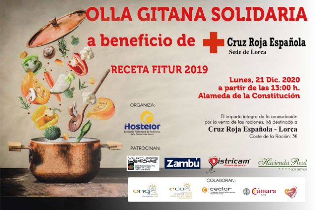 María Dolores Chumillas ha detallado que "la iniciativa 'Olla Gitana Solidaria' se llevará a cabo el próximo lunes, 21 de diciembre, cuando se reunirán en las cocinas de Hacienda Real Los Olivos diferentes cocineros de nuestra ciudad, como Roberto Rodríguez de 'Casa Roberto', Santiago de 'Mirrín', Pedro Lucas de 'Restaurante La Peña, José Antonio de 'Pizzería D´Antojo', Antonio Alegría de 'Tapería 4 Bellotas', Miguel de 'Mesón Lorquino', quienes elaborarán entre 500 y 600 raciones de olla gitana" y ha recordado que "se trata de la receta Fitur 2019".