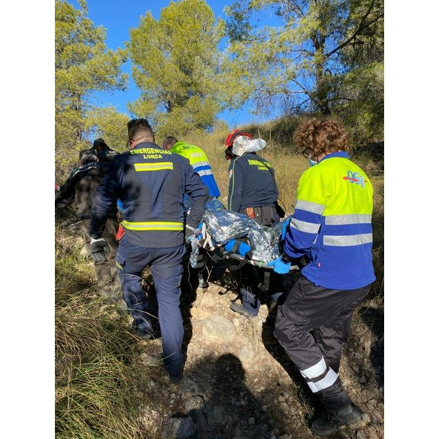 Casalduero ha explicado que "los miembros del Servicio de Emergencias de Lorca, han guiado a la UME del 061 hasta el punto de acceso en vehículo más cercano, y han acompañado a los sanitarios hasta el lugar del accidente. Una vez estabilizada la víctima por parte del 061, y habiendo constatado el buen estado de los cuatro acompañantes de la afectada, se ha evacuado en camilla a la misma hasta la ambulancia, en la que ha sido trasladada al Hospital Rafael Méndez".