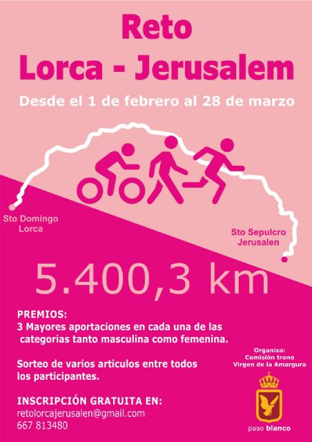 El Paso Blanco presenta el Reto Lorca-Jerusalén, una iniciativa deportiva abierta a todos los blancos con la que se pretende cubrir la distancia desde la Capilla del Rosario de Lorca hasta la Iglesia del Santo Sepulcro en Jerusalén.