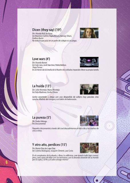 La concejala de Diversidad ha destacado que "el ciclo recoge 'Dicen', el trabajo rodado en EEUU que además trata la temática del bullying; otros con reconocidos nombres de nuestra cinematografía, Fele Martínez o Gorka Otxoa en 'La huida'; trabajos con un toque documental como 'La Pureza' e, incluso, hay hueco para la animación con 'Love Wars', en definitiva, una selección de cortos con un gran recorrido nacional e internacional a sus espaldas y con multitud de premios en todo tipo de festivales".