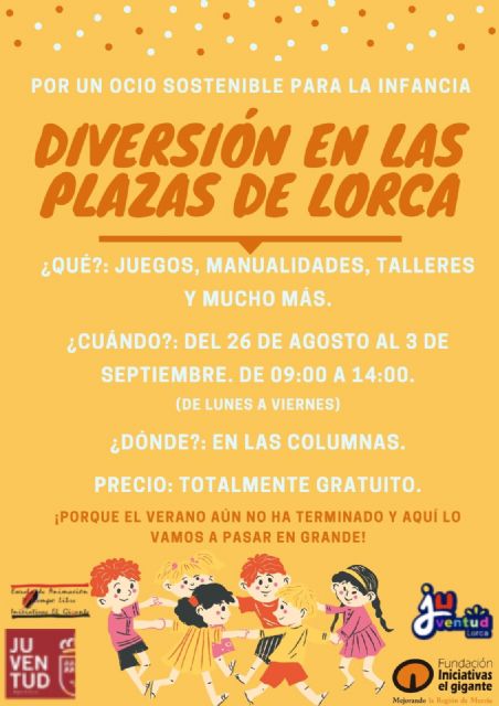El proyecto "Por un ocio sostenible para la infancia: Diversión en las plazas de Lorca, será la etapa práctica, donde pondrán en valor lo aprendido durante el curso. Los datos generales son:
