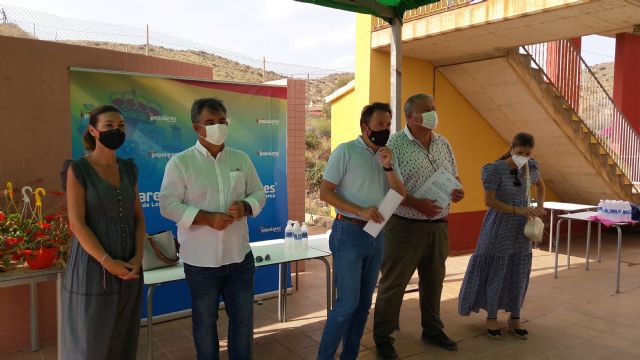 El presidente del Partido Popular de Lorca, Fulgencio Gil, junto a los senadores Francisco Bernabé y Juan María Vázquez, y la diputada regional lorquina María del Carmen Ruiz, han mantenido esta mañana una reunión informativa con los vecinos del poblado de Puntas de Calnegre afectados por la actual Ley de Costas, que sufren una total inseguridad jurídica y podrían perder sus viviendas, con el objetivo de trasladarles de primera mano la iniciativa que el PP ha presentado en el Senado para modificar la Ley de Costas, hecho que "indultaría" este poblado y sus viviendas.