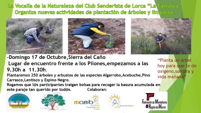El concejal de Medio Ambiente del Ayuntamiento de Lorca, José Luis Ruiz Guillén, ha informado de la celebración de una nueva actividad de plantación de árboles organizada por el Club Senderista La Carrasca.