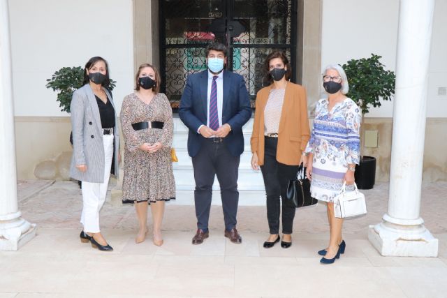 López Miras recibió en el Palacio de San Esteban a la presidenta del grupo, Antonia Martínez, y a miembros de su junta directiva, a quienes trasladó la intención del Gobierno regional de "reconocer el trabajo de Coros y Danzas de Lorca mostrando nuestras tradiciones y folclore por todo el mundo a lo largo de los últimos 75 años, concediéndoles la máxima distinción de la Comunidad".