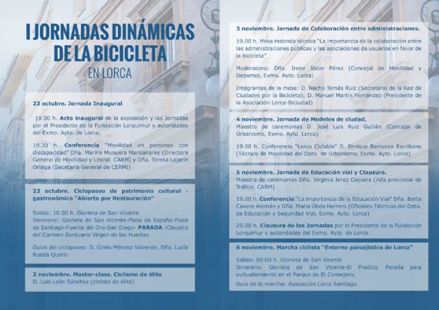 Las 'II Jornadas dinámicas sobre movilidad y bicicleta en Lorca', organizadas por la Fundación Lorquimur en colaboración del Ayuntamiento, se celebrarán del 22 de octubre al 6 de noviembre