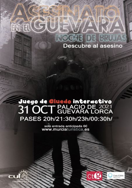 La edil de Cultura ha añadido que, "para el domingo, 31 de octubre, víspera de la Festividad de Todos Los Santos, se ha programado el espectáculo 'Asesinato en el Guevara', que tendrá lugar en el Palacio de Guevara. Con pases a las 20, 21:30, 23 y 00:30 horas. Las entradas para este espectáculo se podrán adquirir de manera anticipada, al precio de 6 euros en www.murciaturistica.es".