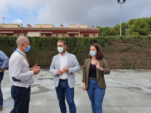El alcalde de Lorca, Diego José Mateos, y la concejala de Deportes, Irene Jódar, han visitado esta mañana las obras que se están acometiendo en dos pistas situadas en el Complejo Deportivo de La Torrecilla 'Ginés Antonio Vidal'.