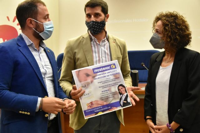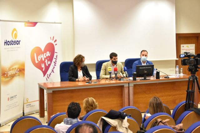 El vicealcalde de Lorca y concejal de Comercio, Francisco Morales, la concejala de Empleo y Desarrollo Local, Isabel Casalduero, y el presidente de la Asociación Profesional de Hosteleros de Lorca, Jesús Abellaneda, han presentado una nueva campaña en la que el Ayuntamiento colabora con Hostelor para fomentar la profesionalidad y empleabilidad en el sector hostelero lorquino.