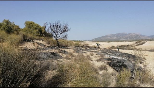 Servicios de emergencia dan por extinguido un conato de incendio forestal en la pedanía lorquina de Zuñiga en el monte que está junto a la finca de Cerdá.