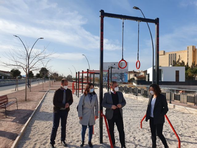 Mateos Molina ha explicado que este parque, ubicado en la Avenida alcalde José Antonio Gallego, ha supuesto una inversión de 18.500 euros, tiene unas dimensiones de 22 metros de largo, por 6 de ancho, situándose como uno de los más grandes de la Región de Murcia. Podemos encontrar una estación multibarra con 3 barras, incluyendo una escalera sueca, dos estaciones de barras paralelas, barras de flexiones, barra de baile (pole dance), estación de anillas y panel informativo. Además, se han colocado 12 aparcabicis para facilitar la movilidad de los usuarios y usuarias".