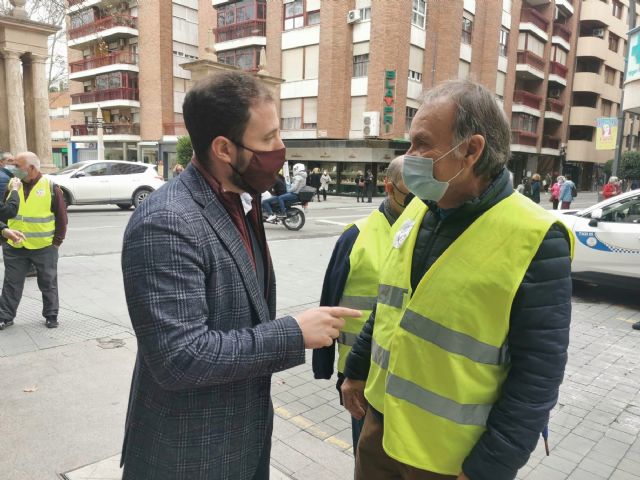 Compartiendo estos objetivos, Francisco Morales acompañaba este viernes al colectivo de los 'Yayoflautas' que se concentraba en la avenida Juan Carlos I que reclamaba una mejor atención en las oficinas bancarias, ya que el grupo municipal Ciudadanos Lorca ha presentado una moción, que será debatida mañana en el Pleno Municipal del mes de febrero, en la que pide catalogar como "bancos amigables de las personas mayores" a aquellas entidades bancarias que presten un servicio adaptado a este colectivo.