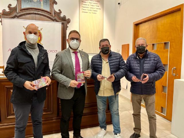 El alcalde de Lorca, Diego José Mateos, junto al concejal de Festejos, José Ángel Ponce, y los representantes de la Asociación de Vecinos de San José de la celebración de las Fallas de San José 2022.