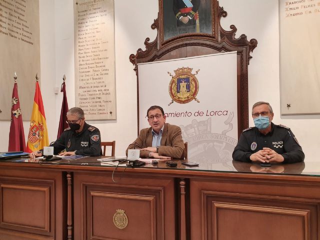 El concejal de Seguridad Ciudadana, José Luis Ruiz Guillén, ha hecho balance, esta mañana, junto al Comisario jefe de Policía Local, José Antonio Sansegundo, de las actuaciones realizadas por las distintas unidades que componen la Policía Local de Lorca durante el 2021.