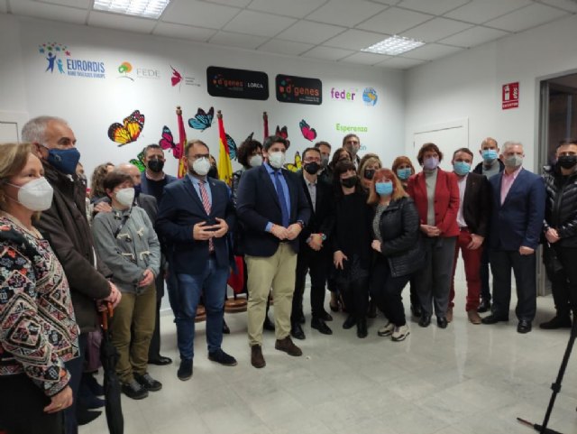 El Centro Multidisciplinar de atención integral a personas y familias con enfermedades raras, sin diagnóstico y discapacidad “Cristina Arcas Valero” de Lorca quedó ayer, 23 de marzo, inaugurado de manera oficial con la asistencia del presidente de la Comunidad Autónoma de la Región de Murcia, Fernando López Miras; el alcalde de Lorca, Diego José Mateos Molina; y el presidente de D´Genes, Juan Carrión Tudela.