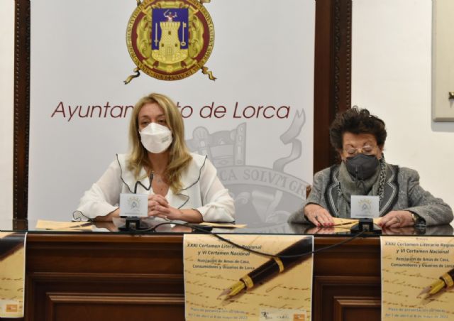 La concejala de Cultura del Ayuntamiento de Lorca, María Ángeles Mazuecos, ha presentado junto a la presidenta de la Asociación de Amas de Casa, Consumidores y Usuarios de Lorca, Carmina Reverte, el XXXI Certamen Literario Regional y VI Certamen Nacional.