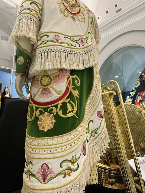 Las vestimentas de los 45 soldados están formadas por una tunicela blanca y la parte inferior semejante a la de los arqueros, también bordada con cenefas en oro y sedas.